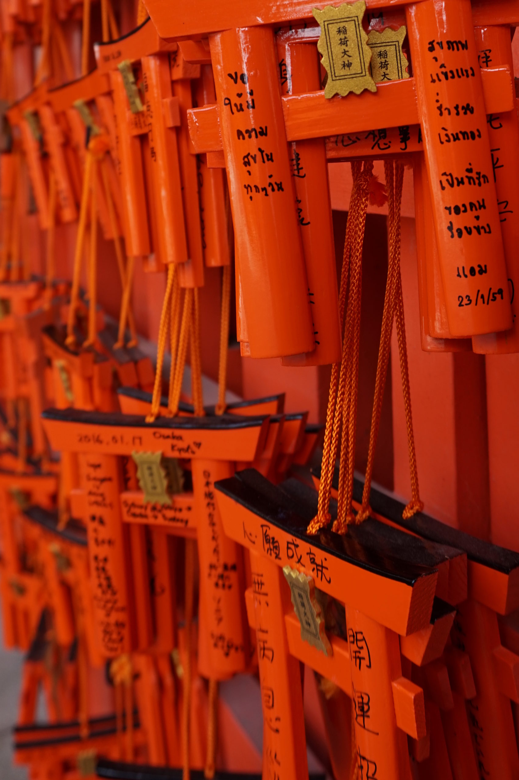 der fushimi inari schrein ist ein sehr bekannter und bedeutender schrein in kyoto. dementsprechend sind dort immer sehr viele leute unterwegs. ich fand ihn trotzdem ziemlich beeindruckend – vorallem aufgrund der farben dort. ausserdem mag ich füchse 😀 und die meisten statuen dort sind füchse 🙂 natürlich nach den toris – das sind eindeutig mehr. man kann auf den mt inari gehen (ist eher ein hügel als ein mount) – dann findet man trotzdem einige einsame ecken. der „aufstieg“ dauert ca. 30 min und lohnt sich wirklich.